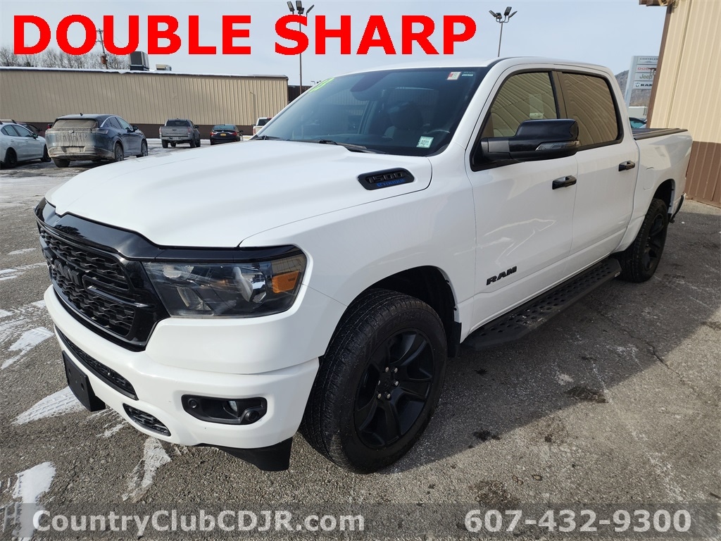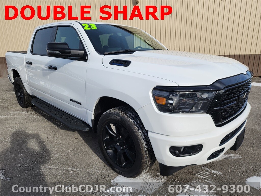 2 SETS OF KEYS, 115V Auxiliary Power Outlet, 12" Touchscreen Display, 2nd Row In Floor Storage Bins, 3 Rear Seat Head Restraints, 4 Way Front Headrests, 400W Inverter, 4G LTE Wi-Fi Hot Spot, 9 Amplified Speakers w/Subwoofer, Accent Color Door Handles, Accent Color Premium Power Mirrors, Air Conditioning ATC w/Dual Zone Control, All R1 High Radios, All Radio Equipped Vehicles, Anti-Spin Differential Rear Axle, Apple CarPlay, Auto-Dimming Exterior Driver Mirror, Auto-Dimming Rear-View Mirror, Big Horn Badge, Big Horn Level B Equipment Group, Black Exterior Mirrors, Black Exterior Truck Badging, Black Headlamp Bezels, Black Interior Accents, Black Painted Exterior Mirrors Caps, Black Premium Power Mirrors, Body Color Front Bumper, Body Color Rear Bumper w/Step Pads, Bucket Seats, Center Console Parts Module, Class IV Receiver Hitch, Cluster 7.0" TFT Color Display, Connected Travel & Traffic Services, Connectivity - US/Canada, Convex Wide-Angle Exterior Mirror Insert, Deluxe Cloth Bucket Seats, Disassociated Touchscreen Display, Dual Exhaust w/Black Tips, Exterior Mirrors Courtesy Lamps, Exterior Mirrors w/Heating Element, Exterior Mirrors w/Supplemental Signals, For Details, Visit DriveUconnect.com, For More Info, Call 800-643-2112, Front Fog Lamps, Front Seat Back Map Pockets, Full Length Floor Console, Global Telematics Box Module (TBM), Glove Box Lamp, Google Android Auto, GPS Antenna Input, GPS Navigation, HD Radio, Heated Front Seats, Heated Steering Wheel, Integrated Center Stack Radio, Integrated Voice Command w/Bluetooth, LED Footwell Lighting, Manual Adjust 4-Way Front Passenger Seat, Media Hub w/2 Charge Only USBs, Night Edition, ParkSense Front/Rear Park Assist w/Stop, Power 2-Way Driver Lumbar Adjust, Power 8-Way Driver Seat, Power Adjustable Pedals, Power-Folding Mirrors, Quick Order Package 23Z Big Horn, Radio: Uconnect 5 Nav w/12.0" Display, RAM Grille Badge - Black, Rear 60/40 Folding Seat, Rear Center Armrest, Rear Dome w/On/Off Switch Lamp, Rear Power Sliding Window, Rear Window Defroster, Remote Start System, Security Alarm, SiriusXM Radio Service, SiriusXM Satellite Radio, SiriusXM w/360L, Sun Visors w/Illuminated Vanity Mirrors, Universal Garage Door Opener, USB Host Flip, Wheels: 20" x 9.0" Premium Paint/Polished. 2023 Ram 1500 Big Horn/Lone Star Bright White Clearcoat 4WD 8-Speed Automatic 3.6L V6 24V VVT